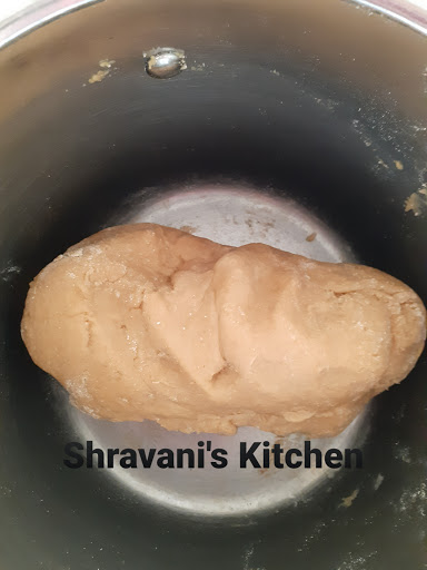 - Add wheat flour and one spoon of fine Semolina to the mixture and knead the dough as shown in the photo 1. It should be hard or medium consistency